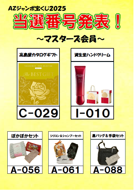AZジャンボ宝くじ2025 当選番号発表!!(マスターズ会員)